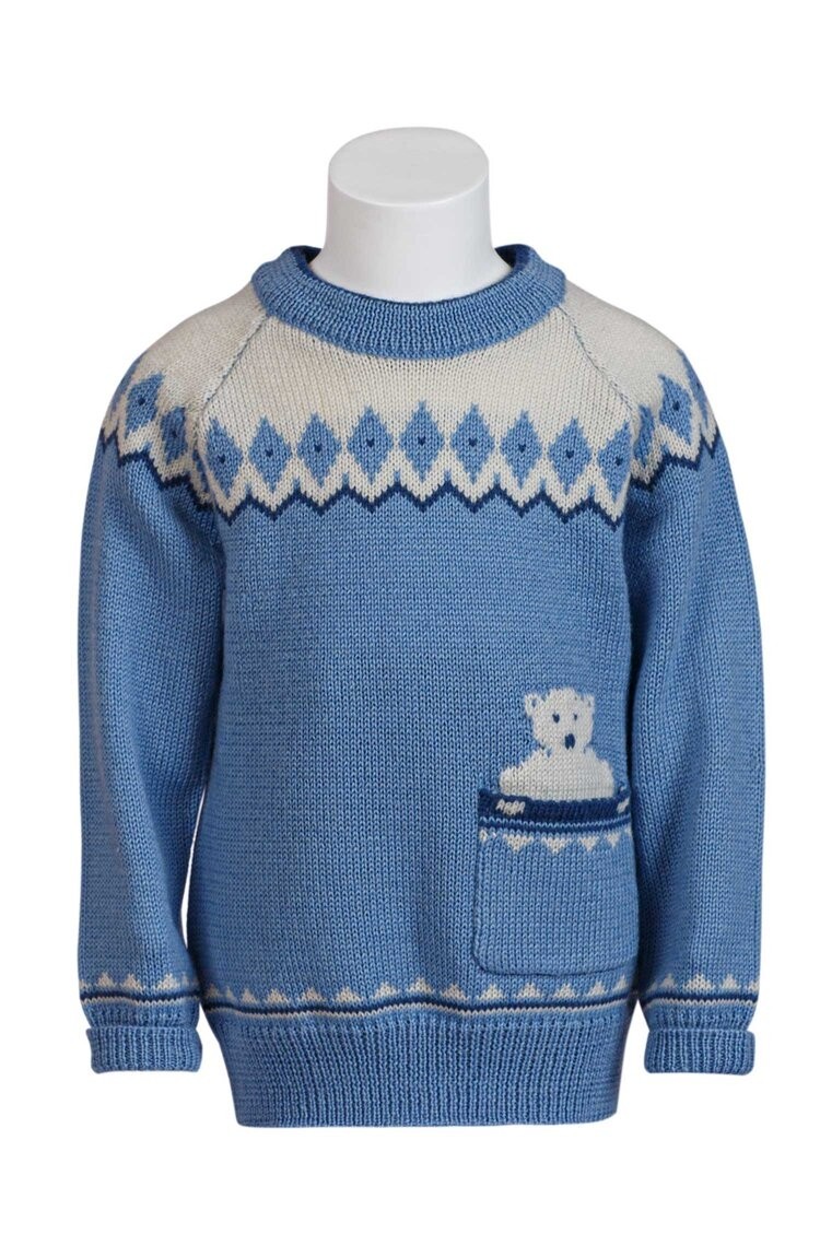 100% Pure Norwegian Wool Polar Bear Pullover for Kids