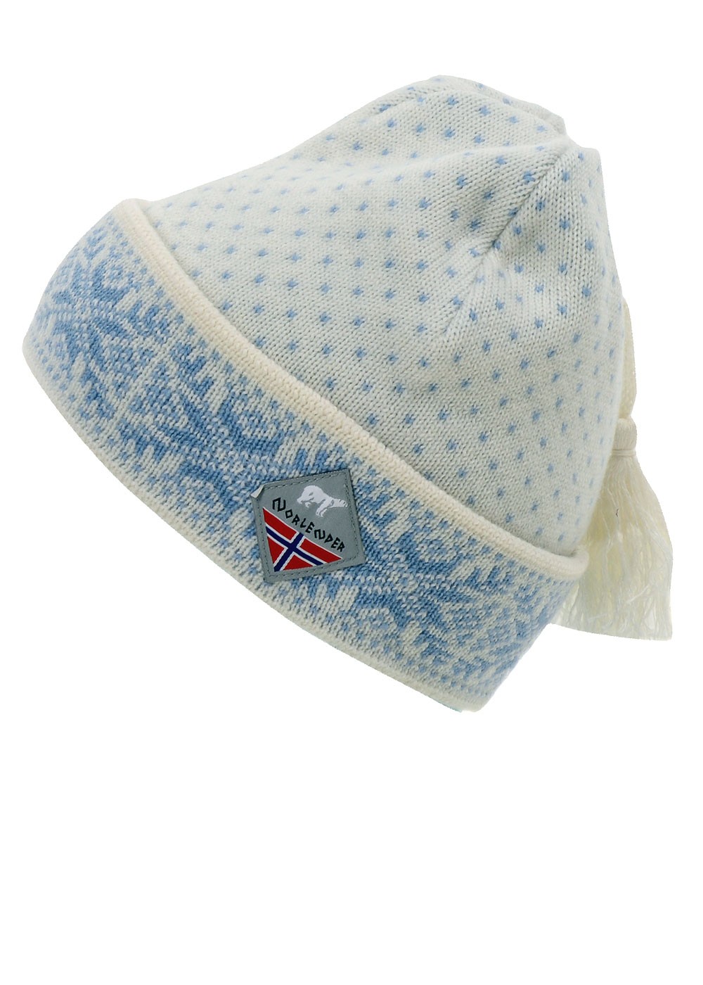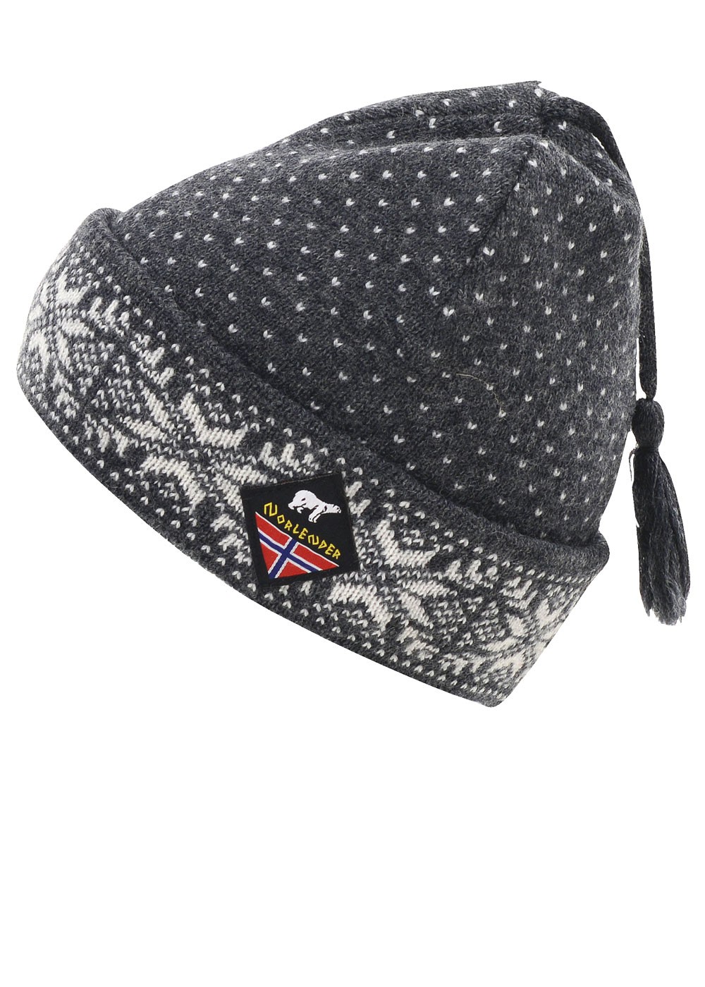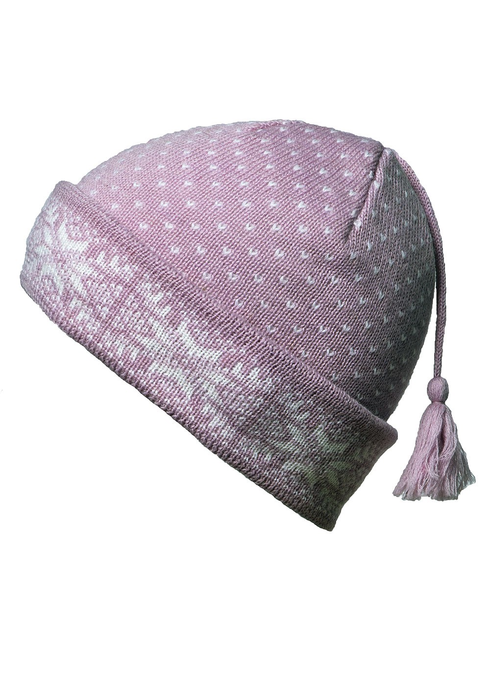 Classic Snowflake Trim & Tassle Wool Hat - White, Black, Grey & Plum