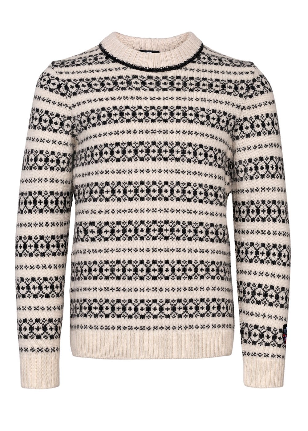 As a new addition to our popular fisherman range, Hitra is a more contemporary take on the classic style. It has the characteristic small scale pattern and a decorative stripe on the collar. Natural thermal properties of Norwegian wool make it perfect for outdoor activities in the sun or rain.